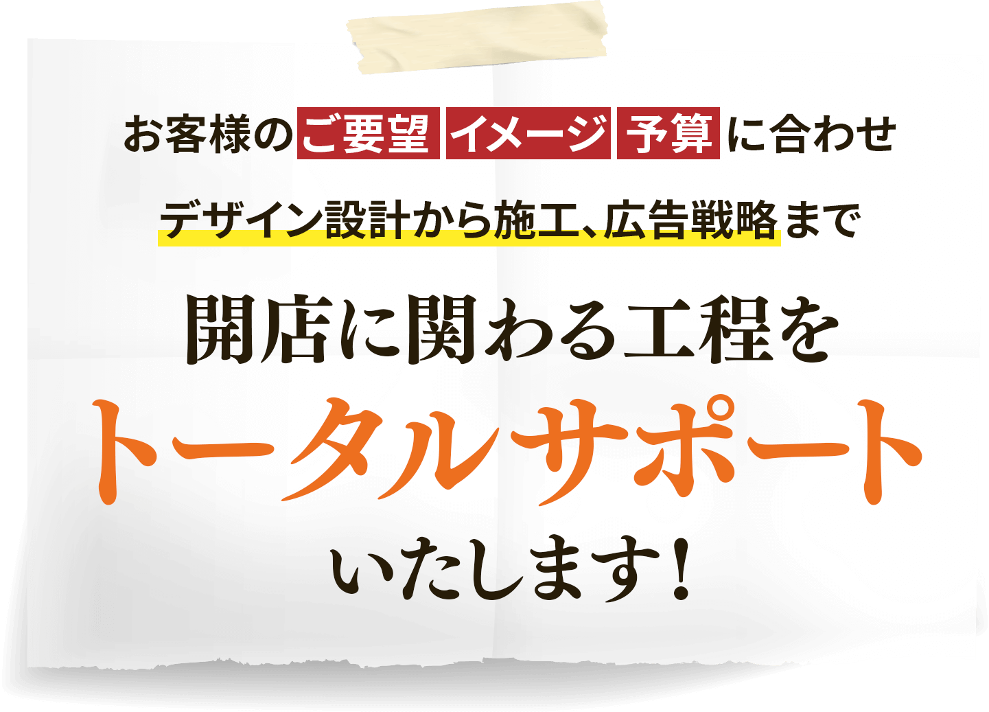 また当社では、20年以上の実績のある職人達が施工までを担当します。「せっかく出すお店だから、実績のある職人に設計して欲しい方」はぜひご相談ください。