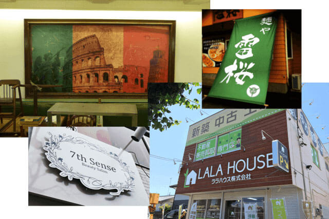 お店の目印となる看板は、絶好のアピールとなります。ここでいかにお店の魅力を伝えられるかで客足は大きく変わってきます。